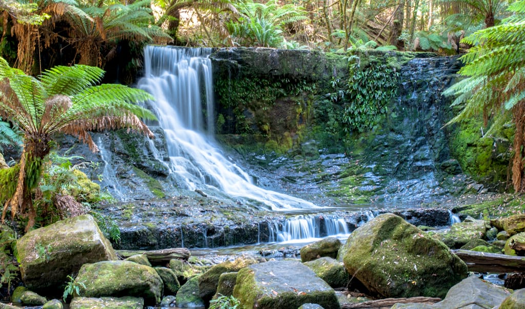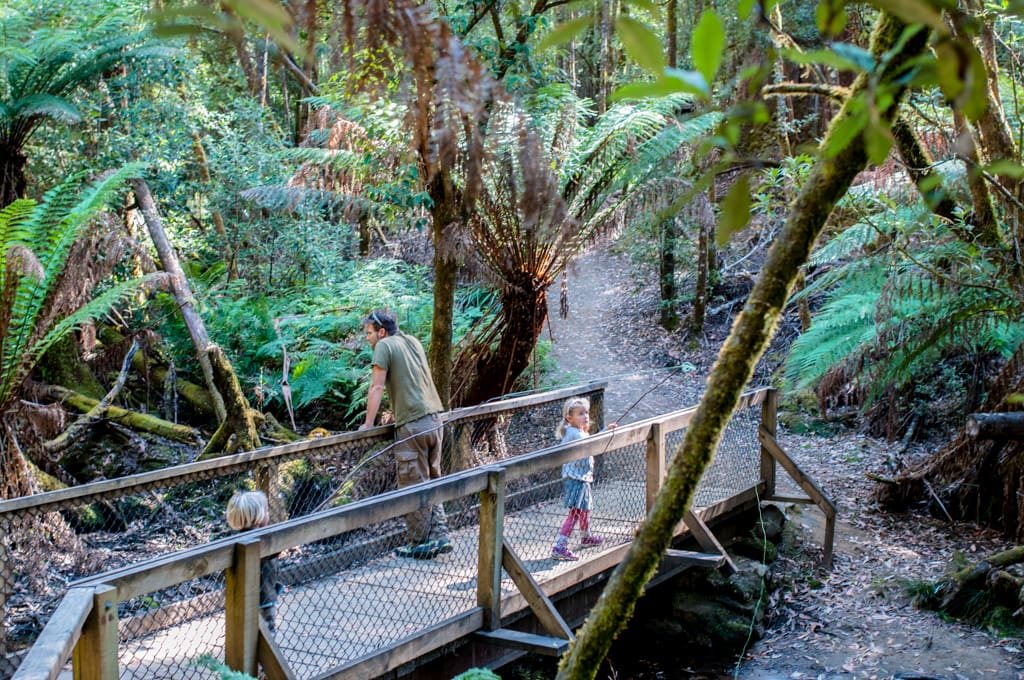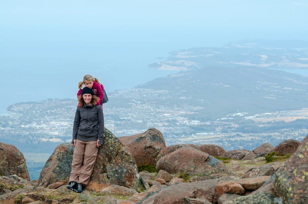 Da wir die Bergspitze vom Mt. Wellington sehen konnten, respektiv die Wolkendecke sehr hoch war beschlossen wir auf die Spitze des Hausbergs von Hobart zu fahren. Die Aussicht, die uns erwartete war der Hammer! Zum Fotografieren war es leider etwas dunstig. Getankt mit dem wunderschönen Weitblick bauten wir einige Höhenmeter ab für unseren Mittagsrast. Noch einmal fuhren wir durchs Zentrum und dann nach Westen Richtung New Norfolk. Die Fahrt zum Mount Field National Park zog sich in die Länge. Wir wurden aber mit einem schönen Buschcamping belohnt. Kaum angekommen packten wir Bier und Fruchtsäftli ein und marschierten zu den nahe gelegenen Russel Falls. Bei diesem idyllischen Wasserfall stiessen wir auf meine zukünftige Stelle im Rorschacherberg an (ich kriegte am Morgen den positiven Bescheid per Mail). Die Kinder versuchten mit ihren selbstgebastelten Angelruten Fische oder sogar einen Platypus (Schnabelbiber) im Fluss zu fischen…