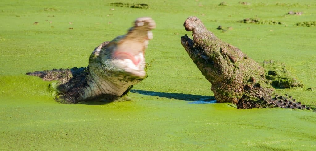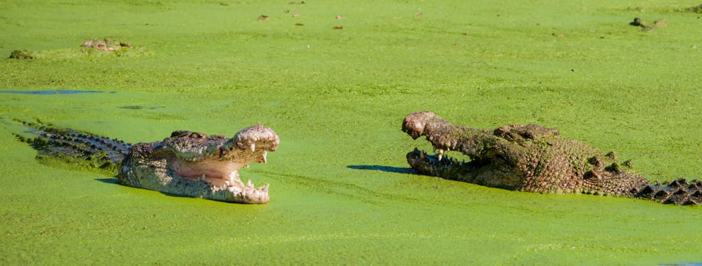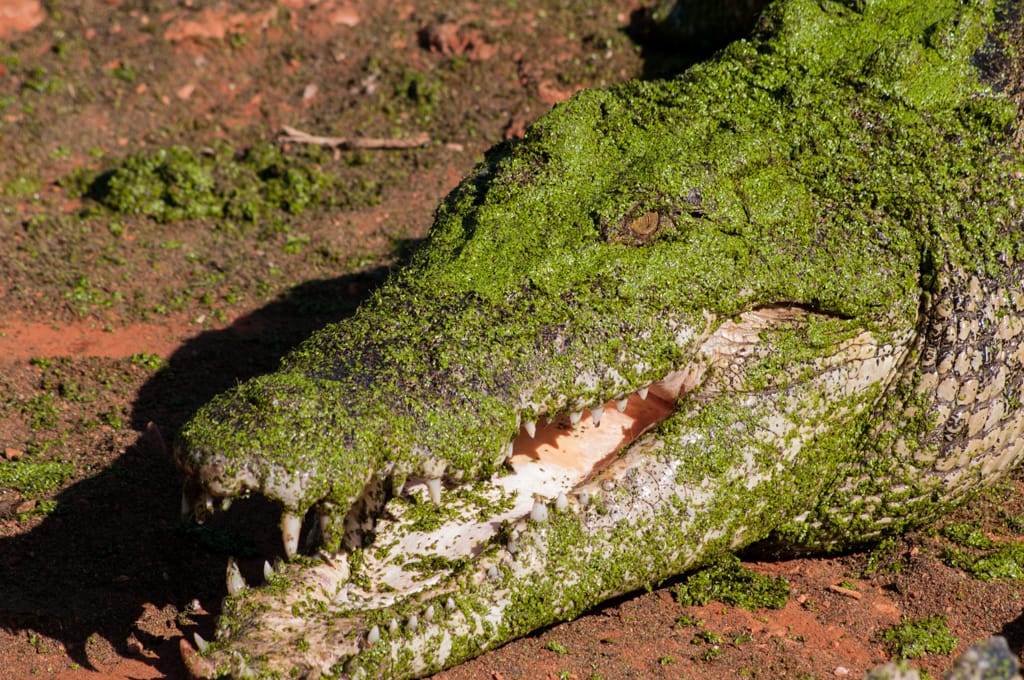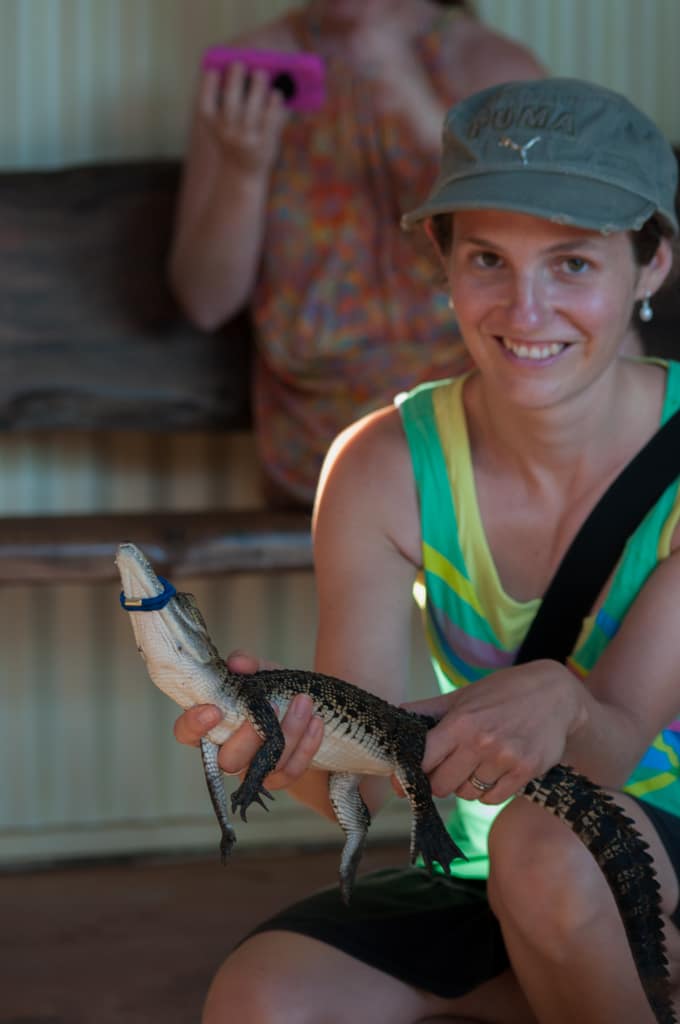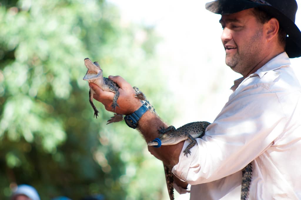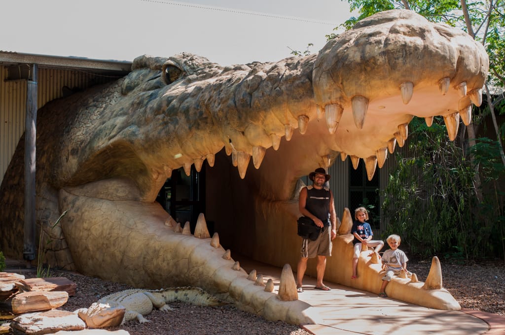 Um 14.00 Uhr eröffnet der Wilderness Park in Broome, den ich unbedingt besuchen wollte. Der Park gehört Malcolm Douglas, ein Tierschützer der eine Dokumentarfilmreihe über den Lebensraum in den Kimberley von Mensch und Tier gedreht hatte. Das Kamerateam hatte ihn oftmals auf seinen Touren begleitet, wenn er Salzwasserkrokodile eingefangen hatte, die eine besondere Bedrohung für die Einwohner waren. So konnte er die Tiere vor dem Abschuss bewahren. Vor vielen Jahren hatte ich diese Sendung immer aufmerksam verfolgt und deshalb wollte ich unbedingt diese besonders wilden Tiere besichtigen. Um 15.00 Uhr konnte man mit dem Tierpfleger auf die Fütterungstour gehen und so erfuhr man ganz viel über die Tiere. Es war äusserst spannend und der Respekt vor den Saltys stieg gleich um ein mehrfaches!