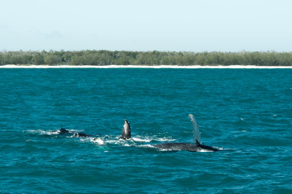 Heute hatten wir just a perfect day. Wir stehen bereits um 7 Uhr auf, um den Bus zu erwischen, den uns zum Hafen bringt. (Wir haben nicht verschlafen!!!) Dort steigen wir auf einen grossen, 3-stöckigen Katamaran um. Wir müssen nicht lange hinausfahren, da treffen wir bereits auf die erste Walfamilie. Eindrücklich und atemberaubend ist es, diese Tiere im Meer beobachten zu können. Jedes Jahr um diese Jahreszeit kommen Tausende Buckelwale in die Hervey Bay, bevor sie ihre anstrengende Wanderung Richtung Süden bzw. Antarktis fortsetzen.