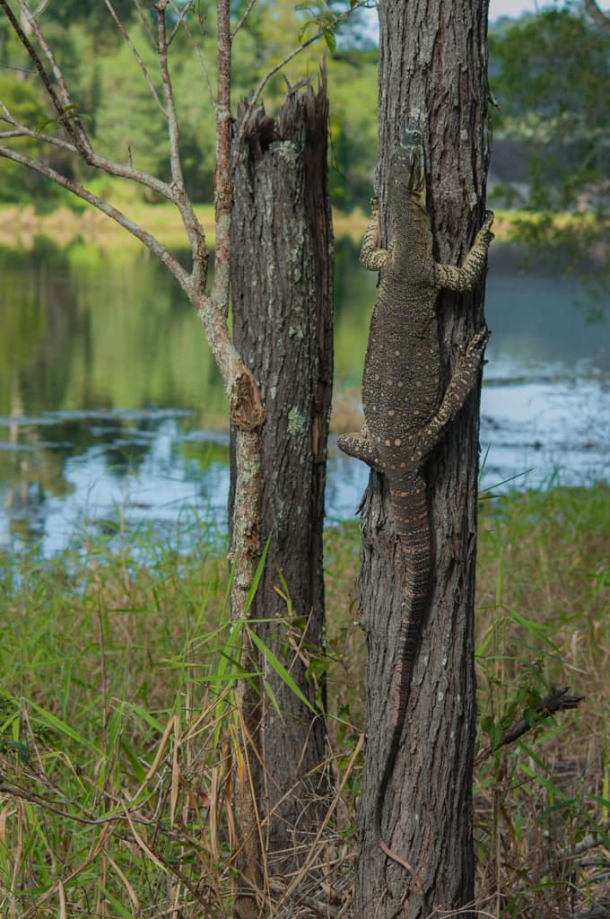 Heute fuhren wir mit dem Bus noch einmal in den Nationalpark und machten, wie schon geplant, eine Wanderung. Dabei sahen wir nebst Kakadus und Wasserschildkröten zwei grosse Leguane aus nächster Nähe. Wir waren an den Tieren so nah dran, dass diese gleich auf dem erstbesten Baum Schutz vor uns suchten. Einer umarmte regelrecht den Stamm und stellte sich tot. Die Angst konnte man in seinen Augen sehen. Natürlich liefen wir nach ein paar geschossenen Fotos weiter und liessen ihn in Ruhe.