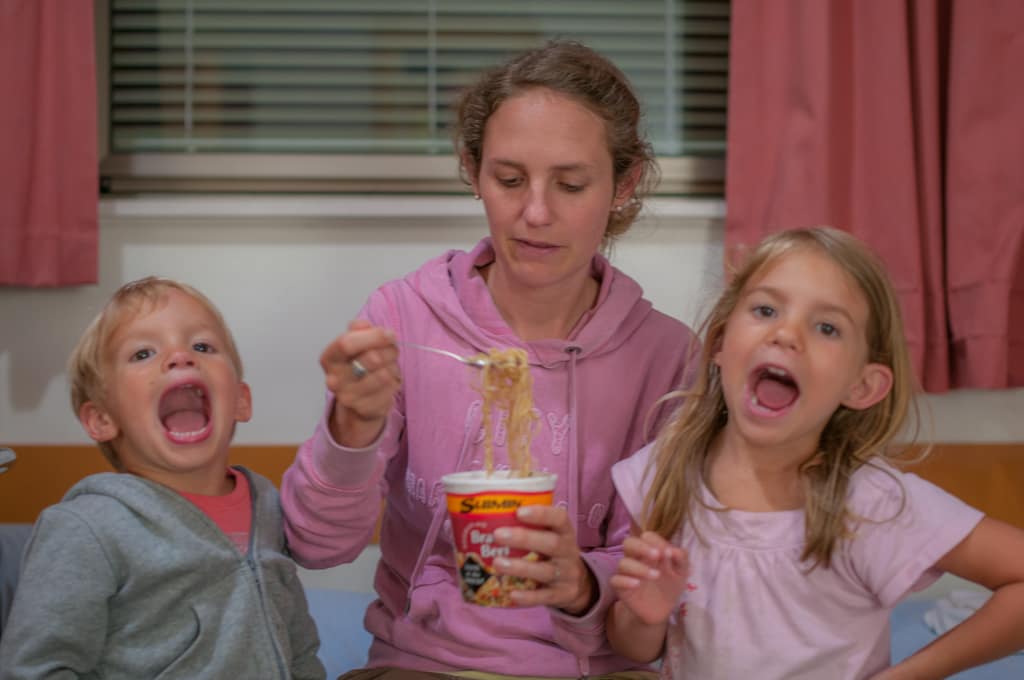 Um das Budget etwas zu schonen versuchten wir bereits am Vorabend die fertigen Nudelsuppengerichte aus. So als „Greenhorn in Fertigprodukten“ ist man schon erstaunt wie schnell die zubereitet sind und auch noch gut schmecken (alle haben es gerne!). Wenn man so im Hotelzimmer lebt und ausser einem Wasserkocher keine weiteren Kochmöglichkeiten hat, bietet sich damit eine wirklich kostengünstige Alternative an. So beschlossen wir an diesem Abend gleich nochmals eine solche Suppe zu verspeisen.