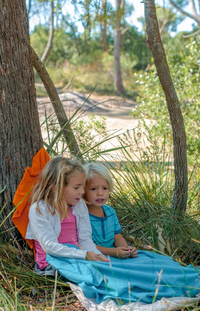 Am Morgen begrüsste uns die Sonne und als wir den traumhaften Strand bestaunten wussten wir alle sogleich: Hier bleiben wir noch ein bisschen. Badehosen wurden kurzerhand angezogen, Sändelisachen und Bücher hervorgekramt und die Stunden am Strand vergingen wie im Flug. Martin und Oli begaben sich danach mit Tante Emma auf Holzsuche für unser Feuer. Damit konnte gekocht und Brot gebacken werden. Kurz vor dem Eindunkeln machten wir uns warm angezogen und mit Stirnlampen bewaffnet auf einen Strandmarsch zu den Zwergpinguinenkolonie. Die Strecke zog sich in die Länge und wir erreichten bei Dunkelheit unser Ziel, Zoé mit zwanzig grossen Muscheln mehr. So mussten wir nicht lange warten und hörten bald die jungen Pinguine nach Futter rufen. Einmal mehr war es jedoch schwierig die kleinen Vögel in der Dunkelheit zu sehen. Die Müdigkeit der Kinder ermunterte uns schon bald den Rückweg anzutreten. Völlig überraschend standen plötzlich im Dunkeln vor uns etwa sieben Zwergpinguine. Nicht weniger überrascht watschelten sie schnell zurück ins Meer. Dieses Highlight entzog Cédrics letzte Energie und so schlief er danach auf Martins Schultern ein, was nun an der Energie von Martin zerrte. War der lange Weg im Tiefsand doch anstrengender als gedacht.