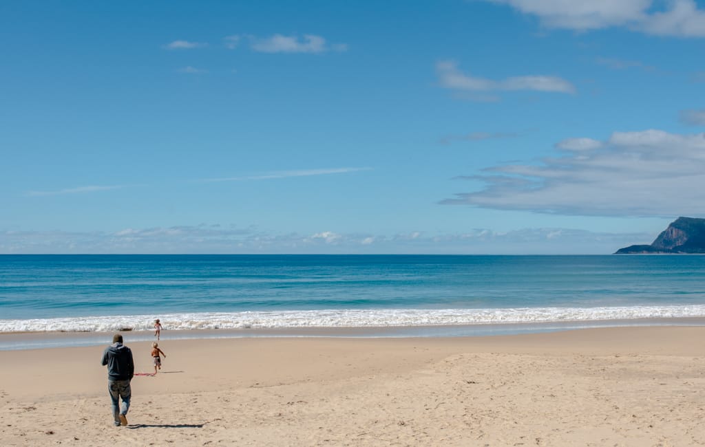 Am nächsten Tag wollten wir die ganze Südinsel entdecken und cruisten kreuz und quer über Stock und Stein und sahen dabei den South Bruny Nationalpark und mit schmatzenden Münder das Cape Bruny Lighthouse, das eines der ältesten Leuchttürme Australiens ist. Immer wieder entdeckten wir zwischen durch wunderschöne, zerklüftete Buchten. Rechtzeitig am frühen Nachmittag liessen wir uns auf einem Stellplatz direkt am Meer nieder. Oli genoss den Beach, Martin eine Wanderung inklusive Schlangenüberraschung, Eva ihr Buch und die Kinder ihr gemeinsames Spielen.