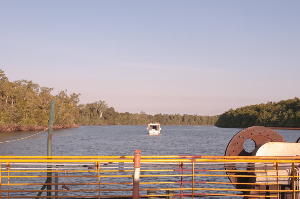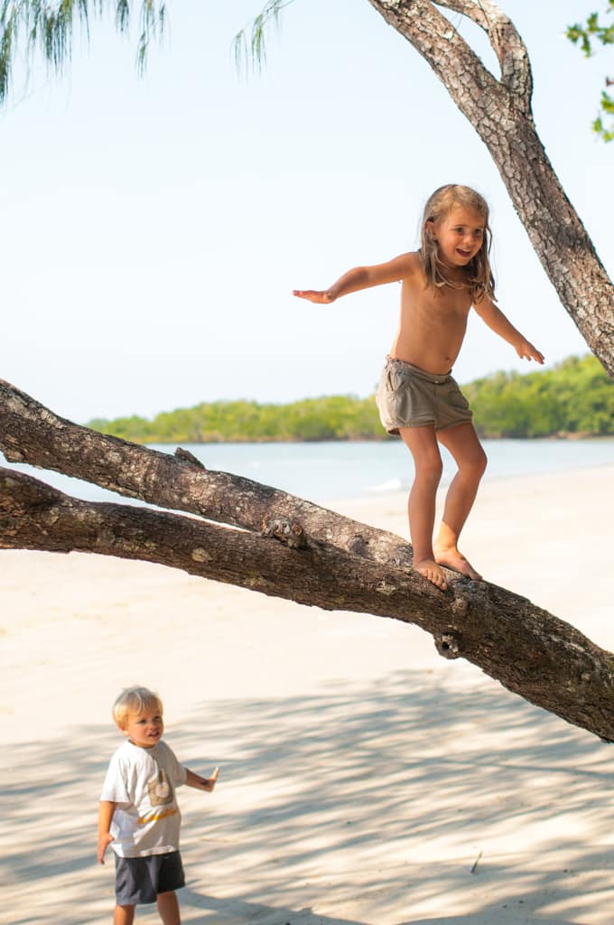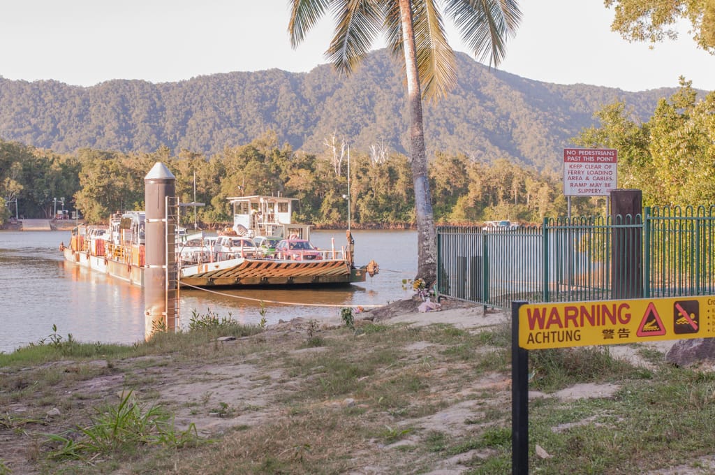 Mit einer kleinen Autofähre überquerten wir den Daintree River und der älteste Regenwald der Welt lag uns zu Füssen. Nach ca. 1 Stunde Fahrzeit durch den Wald entdeckten wir einen schönen Stellplatz. Wir stellten unser Auto in die zweitletzte freie Nische und richteten uns ein. Es war bereits nach 18 Uhr und somit dunkel. Man musste sich online anmelden und während dem Martin das eben versuchte, kam ein Auto und Deutsche sagten uns, dies sei ihren reservierten Platz. Diese Stellplätze in den Nationalparks müsse man Tage voraus reservieren, sonst hätte man keine Chance. Enttäuscht packten wir alles wieder zusammen und fuhren durch den dunklen Wald. Wir hatten aber Glück und schon bald fanden wir am Cape Tribulation einen Campingplatz direkt am Meer mitten im Regenwald. Was möchte man noch mehr? Am nächsten Morgen betrachteten wir den traumhaften weissen Sandstrand. Schade, dass sich auch Krokodile diese herrlichen Plätze aussuchen… Baden war somit nicht möglich. Martin verwöhnte uns aber mit feinen Pancakes zum Frühstück und versuchte sein erstes Brot auf dem Grill.