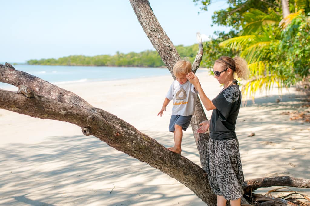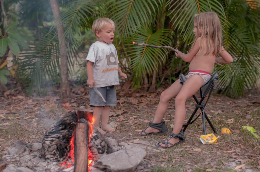 Dann wagten wir uns an unsere erste 4WD Strecke. Sehr steil ging es immer wieder hinauf und hinunter und wir waren froh über unsere Untersetzung. Die 3 Wasserüberquerungen verliefen problemlos. Durch das Gerüttel im Auto schliefen beide Kinder ziemlich schnell ein, was uns eine ruhige Fahrt verschaffte ohne Kasperlis und Co. Wir besichtigten die Bloomfields Wasserfälle und liessen uns kurz nach dem Mittag auf einem herrlichen Campingplatz nieder. Der Rest des Tages verflog wie im Flug mit spielen, Berichte schreiben und Modellhelikopter zusammenbauen. Am Abend gab es einen feinen Eintopf auf dem offenen Feuer.