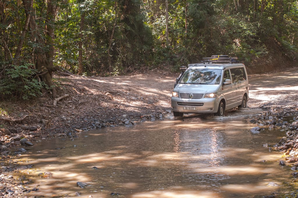 Wir nahmen es am Morgen gemütlich: Zmörgele und Pool geniessen. Ich ergriff die Gelegenheit der Waschmaschinen und wusch nochmals eine Ladung. Kurz vor 11 Uhr waren wir in der VW-Garage. Während dem Charly den neuen Sensor bekam, verweilten wir uns im Büro mit Zeitunglesen und zur Freude der Kinder Fernsehschauen. Eine knappe Stunde später suchten wir nochmals den Gas-Shop auf, um den Anschluss wechseln zu lassen. Natürlich schloss Martin alles gleich an und wir versuchten unsere Herdplatte aus. Welchen Ärger! Es funktionierte immer noch nicht! Martin hatte den Verdacht, dass die Gasflasche leer war. Nach kurzem Nachfragen im Shop, ob es sein könnte, dass wir eine leere Gasflasche im Campingladen gekauft haben, meinte der Mann, ja. Wir müssten noch zu einem Gasfüller gehen…. Einmal mehr wundern wir uns über Australien… Was macht das für einen Sinn, leere Gasflaschen zu verkaufen? Andere Länder, andere Sitten! Wir fuhren zurück zum Campingplatz um die Wäsche abzunehmen und die Gasflasche füllen zu lassen. Und dann, dann hatten wir endlich Gas in unserer Küche! Wir erledigten einen Grosseinkauf im Supermarkt und fuhren aus der Stadt Richtung Cap York. Alle Probleme waren gelöst, wir hatten alles erledigt (ziemlich genau 1 Monat nach unserem Abflug in der Schweiz und 2500 zurückgelegten Kilometer in Australien), ein ganz neues Gefühl. Endlich sind wir zu 100 % bereit uns auf dieses Land einzulassen.