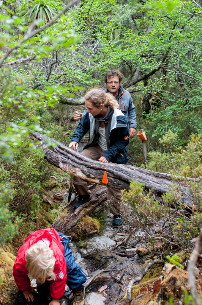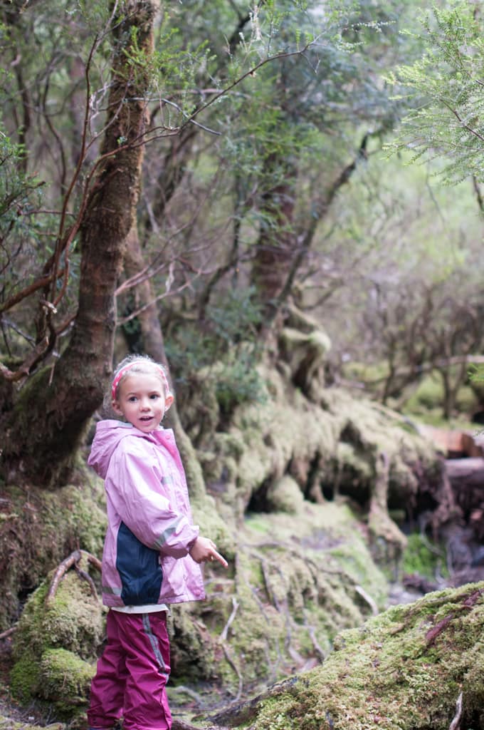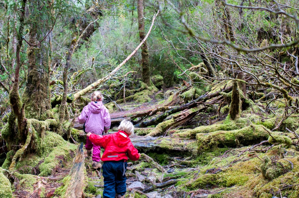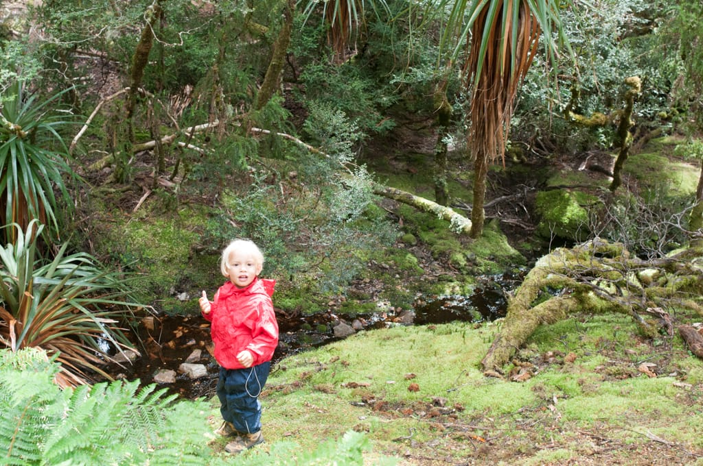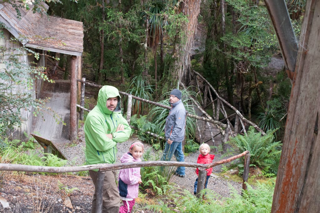Im Nationalpark gibt’s nur eine Übernachtungsmöglichkeit im Discovery Holiday Park. Die vielen Leute dort überraschten uns und so mussten wir uns in die Schlange stellen um einen Platz zu bekommen. Dies klappte aber wunderbar und kurze Zeit später haben wir es in unserer Nische gemütlich gemacht. Zwei junge Luzerner, Cyril und Sandro, liefen an unserem Auto vorbei und wir quatschten übers Reisen. In dieser Zeit spazierte seelenruhig ein knuddeliger Wombat das Strässchen entlang und verschwand wieder im Gebüsch. Was für einen netten Empfang! Ich hatte dauernd gehofft, er würde sich dann nochmals zeigen, aber wir bekamen ihn während den nächsten Tagen leider nicht mehr zu Gesicht. Dafür hatte es aber noch viele kleine Buschwallabies, die keine grosse Scheue kannten. Auf dem schönen Campingplatz mitten im Wald blieben wir 2 Nächte bis das Wetter umschlug. Am ersten Tag wollten wir bei herrlichem Sonnenschein eigentlich eine Wanderung starten. Da Pizzaöfen in der Küche standen, beschlossen wir uns zuerst mit einer Pizza zu stärken und die Wanderung am Nachmittag zu unternehmen. Das Projekt Pizza füllte schlussendlich jedoch fast unseren gesamten Tagesplan aus, da der erste Tomatensugo unglücklicherweise auf dem Waldboden landete (bei uns löste dies bei jemandem einen grossen Ärger aus, bei den Wallabies und Oppossums hingegen grosse Freude). Die tiefe Hitze im Pizzaofen beschleunigte unseren Zeitplan dann auch nicht, so dass schlussendlich nur noch Zeit für einen kurzen Verdauungsspaziergang übrig blieb. Das Wandern wurde also um einen Tag verschoben. Da wollte aber Petrus nicht mehr so wie wir und dicke Regentropfen fielen vom Himmel. Wir fuhren bis zum Waldheim, einer Hütte, die der Österreicher Gustav Weindorfer im Jahre 1912 erbaut hatte. Ein grosser Teil ist ihm zu verdanken, dass die Region als Nationalpark erhalten wurde. Spontan entschlossen wir den Weg hinter dem Waldheim hinauf zu entdecken. Die moosüberwachsenen Bäume liessen die Umgebung völlig unwirklich erscheinen. Als wir zwischen diesen Bäumen liefen, kamen wir uns vor wie in einer Märchenwelt. Nach dem ersten Ausblick, drehten Oli, Cédric und ich um, während Martin und Zoé die Bergspitze erklimmen wollten. Allerdings wurde der Weg immer schmaler, so dass das Durchkommen immer schwieriger wurde. Dazu wurde der Regen immer stärker, so dass die Beiden auch schon bald den Rückweg antraten. Völlig durchnässt trafen wir uns beim Parkplatz wieder. Wir entschieden uns weiter zu fahren und bei besserem Wetter nochmals hier her zu kommen. Der Park hat noch so viele schöne Wanderungen zu bieten. Als wir rund um den Nationalpark herum fuhren, heiterte sich das Wetter wieder auf. Wir fanden in Rosebery einen gratis Stellplatz, kochten hungrig eine grosse Portion Pasta und konnten glücklicherweise unsere nassen Sachen in der Sonne trocknen lassen.