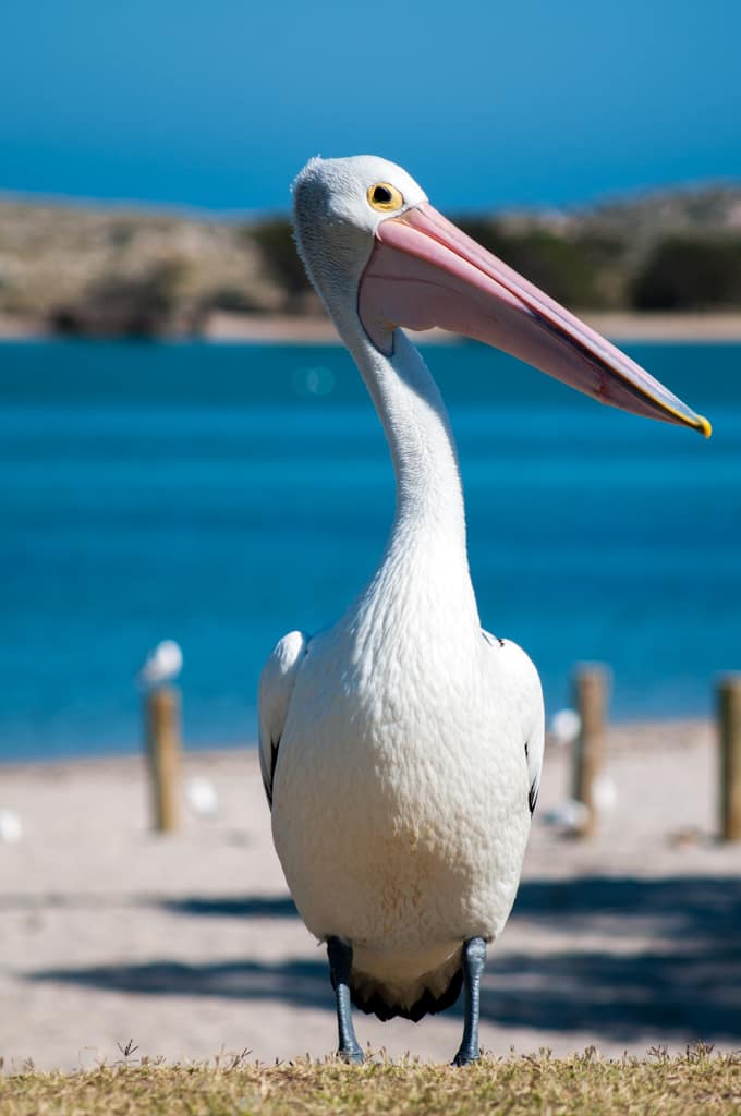 Somit waren wir relativ früh auf der Strasse und erreichten um die Mittagszeit die Stadt Geraldton. Nach einem kurzen Einkaufsstopp und einem Mittagessen entschieden wir uns noch etwas weiter zu fahren. Zoé machte sich auf der Sitzbank bereit fürs Mittagsschläfchen, Cédric bezog sein „Bett“ ganz hinten im Auto. Es ging nicht lange bis beide friedlich schliefen. Martin nützte die Chance und gab Gas. Ich legte meine Füsse hoch und genoss die vorbeiziehende Landschaft, die sich langsam veränderte. Die rote Erde verschwand immer mehr und grosse, bewirtschaftete Getreidefelder tauchten auf. Ein entgegenkommendes Polizeiauto drehte um und gab uns zu verstehen, dass wir anhalten sollen. Ich wurde ganz nervös, einerseits weil die Kinder nicht angeschnallt waren, andererseits weil wir nur die Genehmigung für Queensland-Strassen gelöst haben (eigentlich müssten wir in jedem Bundesland wieder einen neuen Stempel holen…). Der freundliche Polizist fragte uns zuerst wie es uns geht und war dann erstaunt, dass wir das Steuer auf der anderen Seite haben. Dann klärte er uns auf und meinte wir wären 85 km/h gefahren anstatt den erlaubten 70 km/h. Dies sei sehr gefährlich…. Er fragte nach dem Führerausweis und verschwand dann mit Martins schweizerischem Ausweis für einen Moment. In dieser Zeit erwachten unsere Kinder natürlich. Cédric befahl ich, sich wieder ruhig hinzulegen damit man ihn nicht sieht und Zoé musste sich anschnallen. Gleich darauf händigte uns der Polizist den Ausweis zurück und ohne einen Blick auf unsere Rückbank wünschte er uns eine gute Weiterfahrt. Uff! Wir rätselten beim Weiterfahren ob sie tatsächlich unsere Geschwindigkeit beim Entgegenkommen messen konnten oder ob sie gedacht haben, dass ich mit den Füssen oben am Steuern bin…