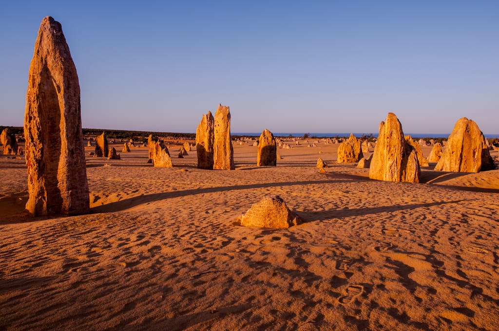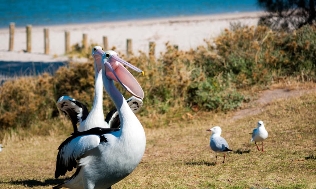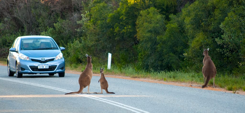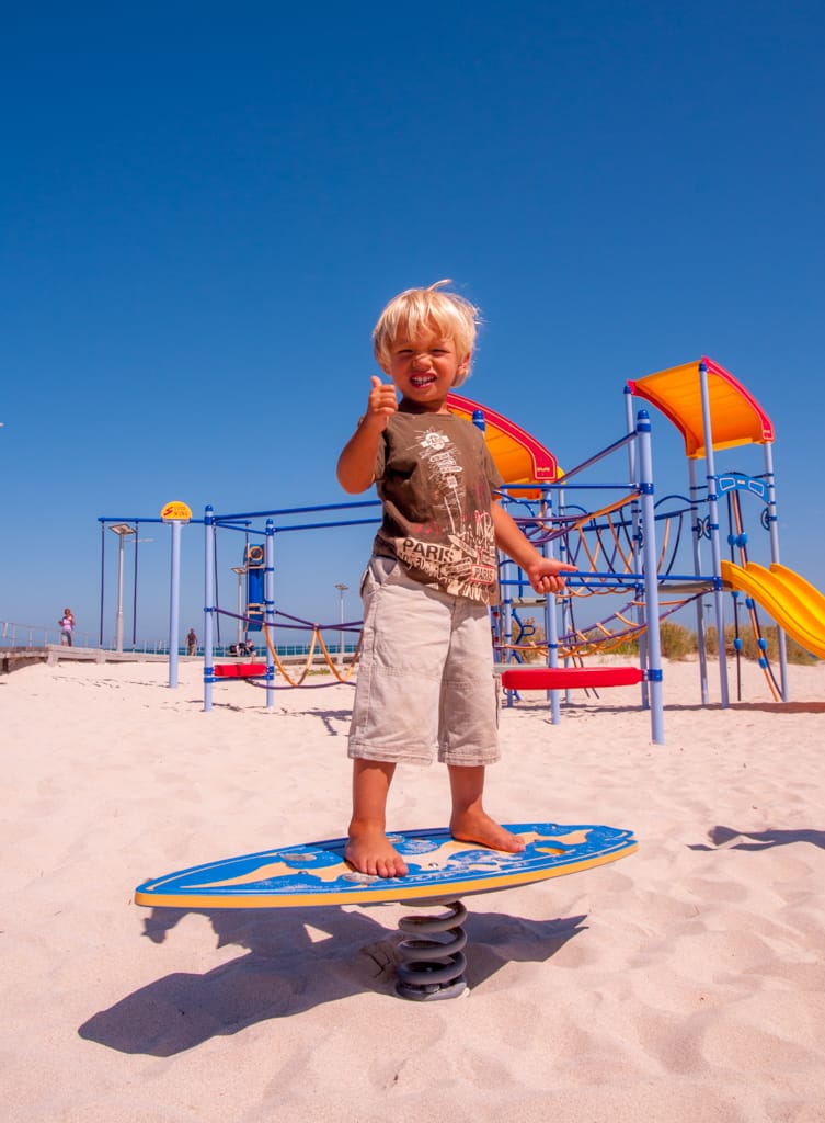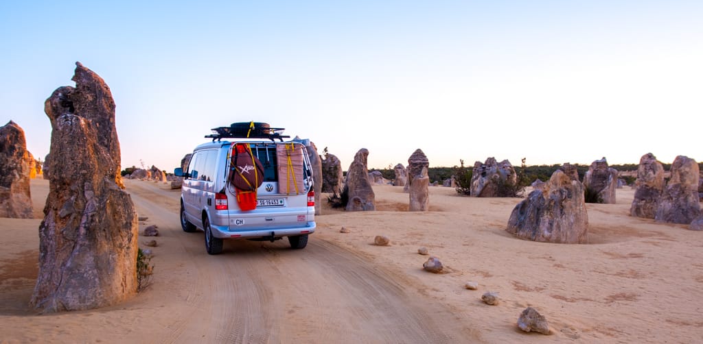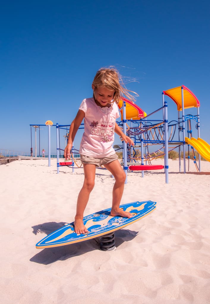 Kurz vor 5 Uhr standen Martin und ich am folgenden Tag auf um rechtzeitig zum Sonnenaufgang bei den bekannten Pinnacles zu sein. Die Kinder liessen wir schlafen. Einmal mehr erstaunte uns die australische Landschaft. Aus dem grünen, dicht bewachsenen Gebiet taucht plötzlich eine karge Sandwüste mit diesen bizzaren Steinfelsen auf. Da die Kinderlein immer noch tief in ihren Träumen schwelgten, verzichteten wir auf den Spaziergang und machten es so wie wahrscheinlich die meisten Australier: Wir fuhren den Drive-Walk. Sehr beeindruckt verliessen wir die Pinnacles und konnten beim Rückweg einige Kängurus beobachten. Eine Mutter war mit ihrem Jungen auf der Strasse und wir konnten sehen, wie das Kleine in den Beutel kletterte. So setzten wir beschwingt mit unseren beiden Schlafkappen unsere Weiterfahrt in den Süden fort. Gegen 9 Uhr erreichten wir voller Vorfreude Perth. Nach so langer Zeit im Busch freute es uns riesig wieder einmal Stadtluft zu schnuppern. Je näher wir dem Zentrum kamen, desto mehr erinnerte es uns an Paris, wenn man sich nordwestlich an La Defense nähert. Es gefiel uns auf den ersten Blick obwohl wir schon fast etwas überfordert waren mit so viel Verkehr und Ampeln. Wir hielten beim Sir James Mitchell Park um zu überprüfen, ob beim Parkplatz ein Campingverbotsschild angebracht wurde. Dies war leider der Fall und so blieb es bei einem schönen Spaziergang und Spielplatzbesuch. Bei der Fahrt durchs Zentrum sahen wir keinen Parkplatz und so hielten wir etwas ausserhalb beim Mac Donalds um unseren Hunger zu Stillen. Im Swan Valley Quartier bezogen wir unseren Campingplatz und verbrachten den heissen Nachmittag im Pool. Der nächste Tag war etwa 10 Grad kühler (26 Grad) und somit perfekt für einen Stadtbummel in dieser freundlichen, beschaulichen und sauberen City.