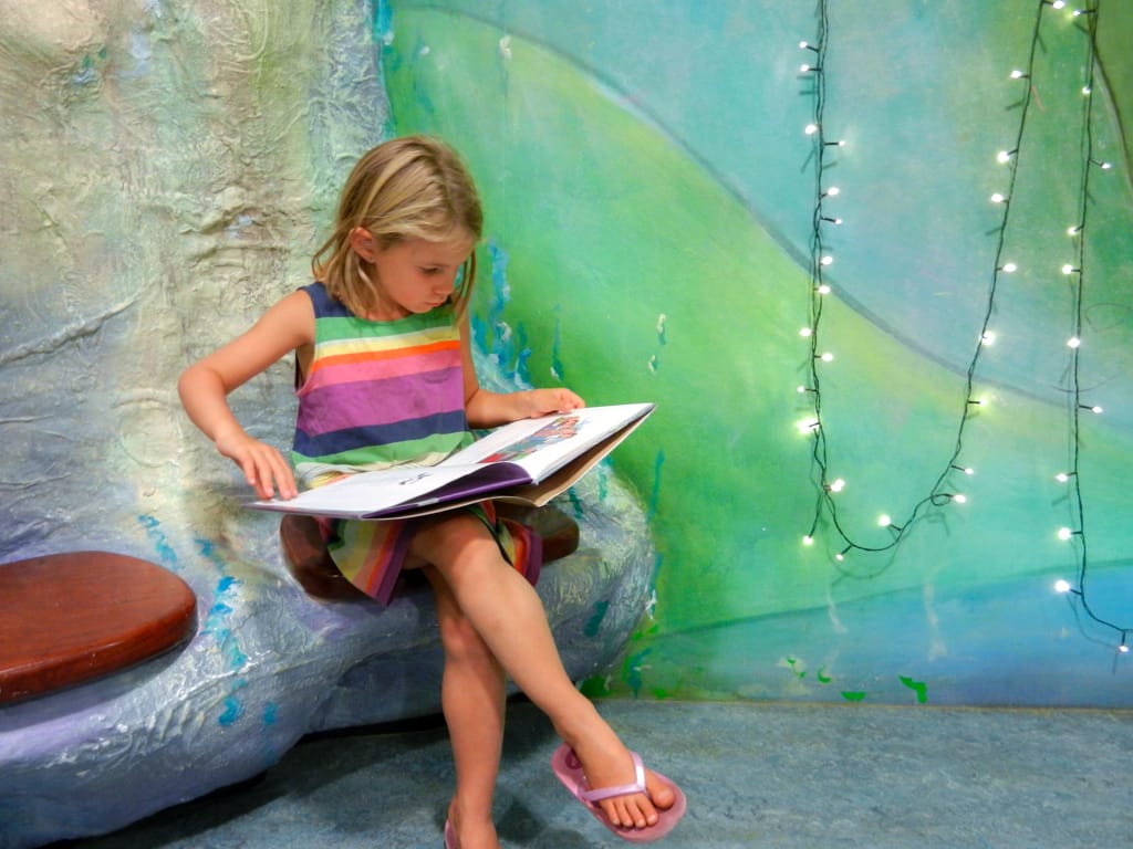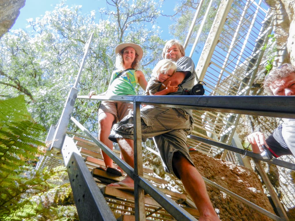 Ein Mail von der Regierung bekamen wir keins. Einen Strand fanden wir, allerdings einen, der rege als Verkehrsstrasse genutzt wird. Dafür nochmals ein schönes Gratisplätzchen zum Pfuse, am Pink Beach. Nach einem Strandtag dort fuhren wir am Sonntag zum Wine and Seafood Festival in Cape Jaffa. Wenn wir schon im Festival State sind, wie South Australia genannt wird, wollen wir natürlich auch ein Fest miterleben. Wir kamen gerade rechtzeitig um noch eine Sitzgelegenheit inklusive Tisch zu ergattern und beim Kinderschminken noch nicht lange anstehen zu müssen. Zoé verpuppte sich in einen Schmetterling, während Cédric sich in ein grünes Monster verwandelt (vielleicht in einen Tasmanischen Teufel?). Das Festival war nicht besonders gross, doch es gab einige Weine zum Probieren und Martin konnte Calamares essen. Eine Liveband sorgte für gute Stimmung. Wir verliessen das Fest bevor die Männer nicht mehr fahren konnten um noch 100 km ins Landesinnere nach Naracoorte zu gelangen. Dort gab es anscheinend schöne Tropfsteinhöhlen. Wir bezogen Platz auf dem Nationalpark Camping und konnten dort Abends kurz vor der Dunkelheit grosse Gruppen von Kängurus beobachten. Der Temperaturunterschied von der Küste ins Landesinnere war erstaunlich. Für die Tropfsteinhöhlen wurde für jede einzelne von den 26 (!) eine Eintrittsgebühr verlangt. Wir entschieden uns für die günstigste, die man auf eigene Faust erkunden durfte, die Wet Cave. Etwas später merkten wir, dass wir uns dieses Ticket hätten schenken können, da man selbst das Tor zur Höhle öffnete und es niemanden interessierte, ob man bezahlt hatte. Naja wir trösteten uns damit, dass es auch auf dem Camping niemanden interessierte und wir so eine weitere Gratisnacht verbuchen konnten. Unser Weg führte uns weiter nach Mt. Gambier, einer Stadt am Fuss eines Vulkans. Auf einem schönen Big 4 Campingplatz richteten wir uns ein und kühlten uns im Pool ab. Richtig heiss wurde es dann aber heute. Die Temperaturen kletterten wieder über 40 Grad und etwas an der Sonne zu unternehmen war praktisch unmöglich. Beim kurzen Besuch der Garden Cave erblickten wir die Bibliothek. Die klimatisierten Räume luden uns gerade ein, sie zu besuchen. Es erinnerte uns an die australische Anfangszeit in Brisbane, wo wir oft die Bibliothek besuchten. Diese Bibliothek hier in Mt. Gambier ist sogar noch schöner. In der Kinderecke fühlte man sich wie in einer Zauberwelt tief unten im Ozean. Ein schönes Kaffee und der gratis Internetzugang erfüllte unsere Bedürfnisse. Wir liessen uns viel Zeit in dieser Bücherwelt und überlegten uns, welche kühlen Orte wir sonst noch abklappern könnten. So besuchten wir den Baumarkt und den Woolworths. Anschliessend fuhren wir Cédric in den Schlaf und guckten uns die Aussichten rund um die 4 kleinen Seen an. Dann legten wir uns in den Pool beim Campingplatz und weihten unsere Kinder in den Tischtennissport ein 😉