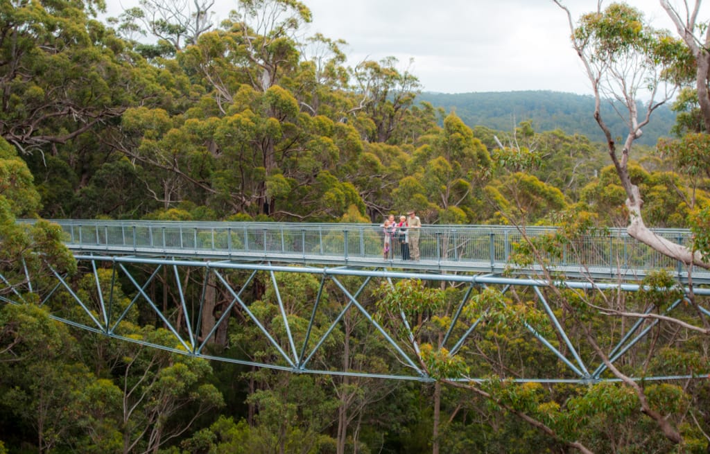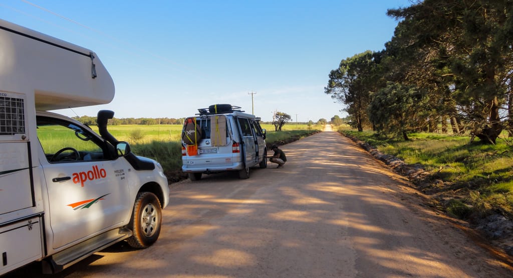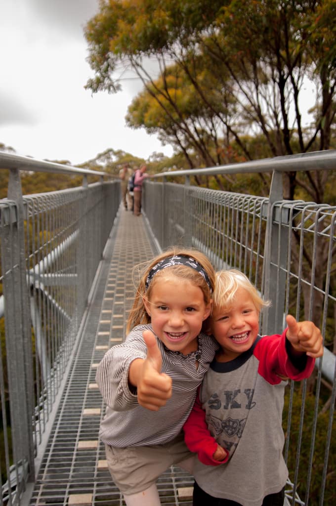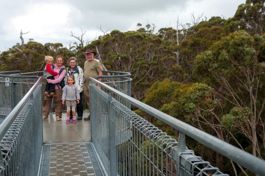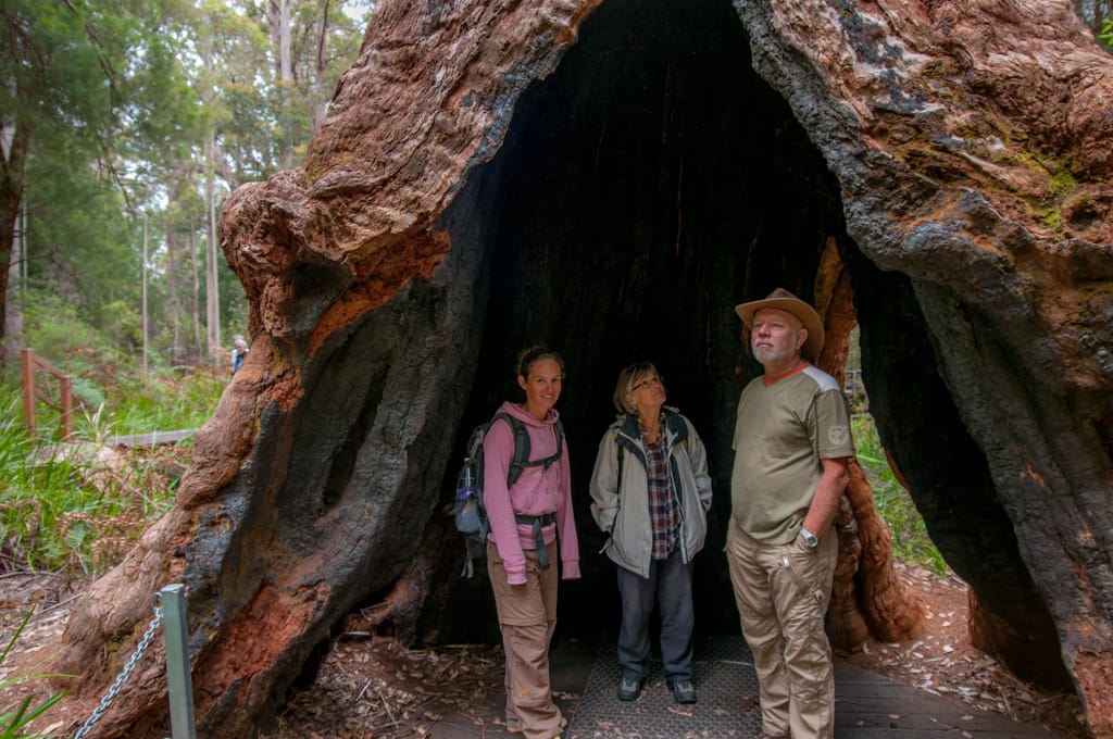 Der nächste Tag war immer noch wolkenverhangen. Wir fuhren zurück an die Südküste und füllten die Dieseltänke in Walpol. Etwas weiter hielten wir im Giant Valley Nationalpark und bestaunten die riesigen Bäume. Durch den Tree Top Walk gelangten wir über eine Brücke, die bis zu 40 m hoch war, in die Baumkronen dieser Karri-Bäume. Auf einem Spazierweg am Boden konnten wir die ausgehölten Stämme erkunden. Das Wandern gab Hunger und so picknickten wir beim Parkplatz. Allerdings wurde das Wetter immer schlechter und der Regen liess uns dann schnell aufbrechen. Da die Strandörtchen wie z.B. Denmark bei schlechtem Wetter nicht viel zu bieten haben, fuhren wir weiter bis zur herzigen Stadt Albany. Dort bezogen wir auf einem schönen Big 4 Camping unseren Platz. Beim anschliessenden Strandspaziergang inklusive Muschelsuche bewunderten wir die grossen Wellen, den feinen, hellen Sand und die grünen Hügel rundherum. Schade, dass das Wetter nicht so mitspielte! Dennoch entschieden wir uns zwei Nächte hier zu bleiben. Ein Stadtrundgang lohnte sich für den zweiten Tag, ausserdem konnten wir so in Ruhe unsere Wäsche waschen und der Campingplatz hatte einen warmen Whirlpool zu bieten, der sich bei diesem Wetter herrlich anerbot. Die örtlichen Temperaturen liessen jedoch unsere Reiseroute ändern. Anstatt weiter der Südküste nach zu reisen, machten wir uns dann wieder in Richtung Norden auf. Bereits nach ca. 2 Stunden Fahrt zeigte sich die Sonne wieder. Unser Ziel war in die Nähe des Wave Rocks zu kommen. So fuhren wir viele Kilometer und liessen die abwechslungsreiche, weite Landschaft an uns zu vorbeiziehen.
