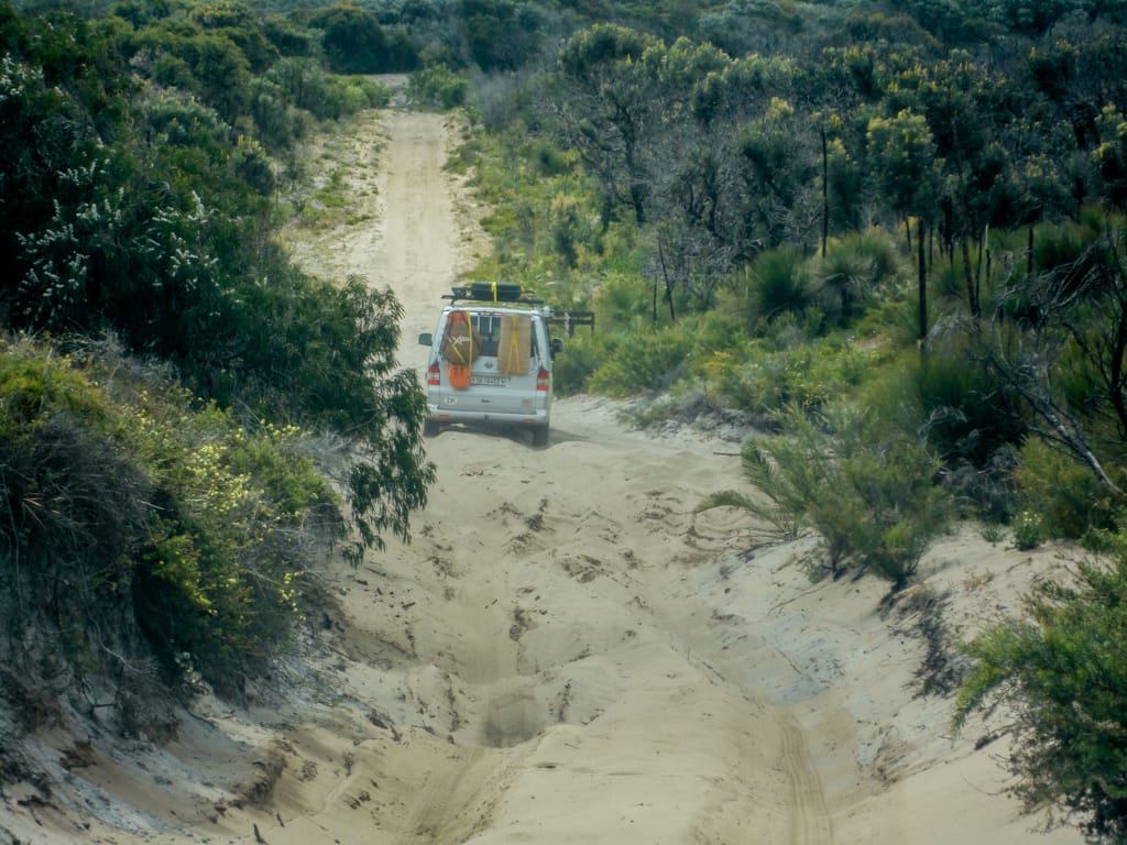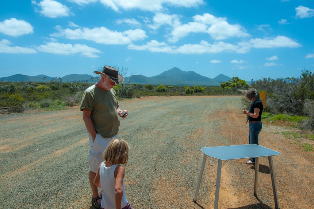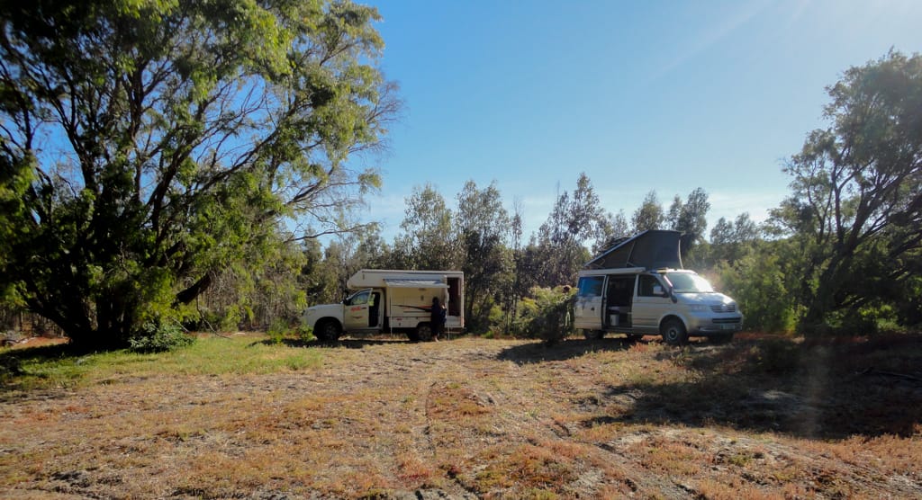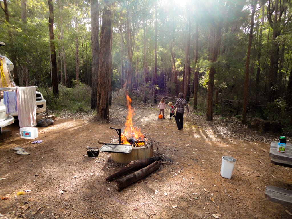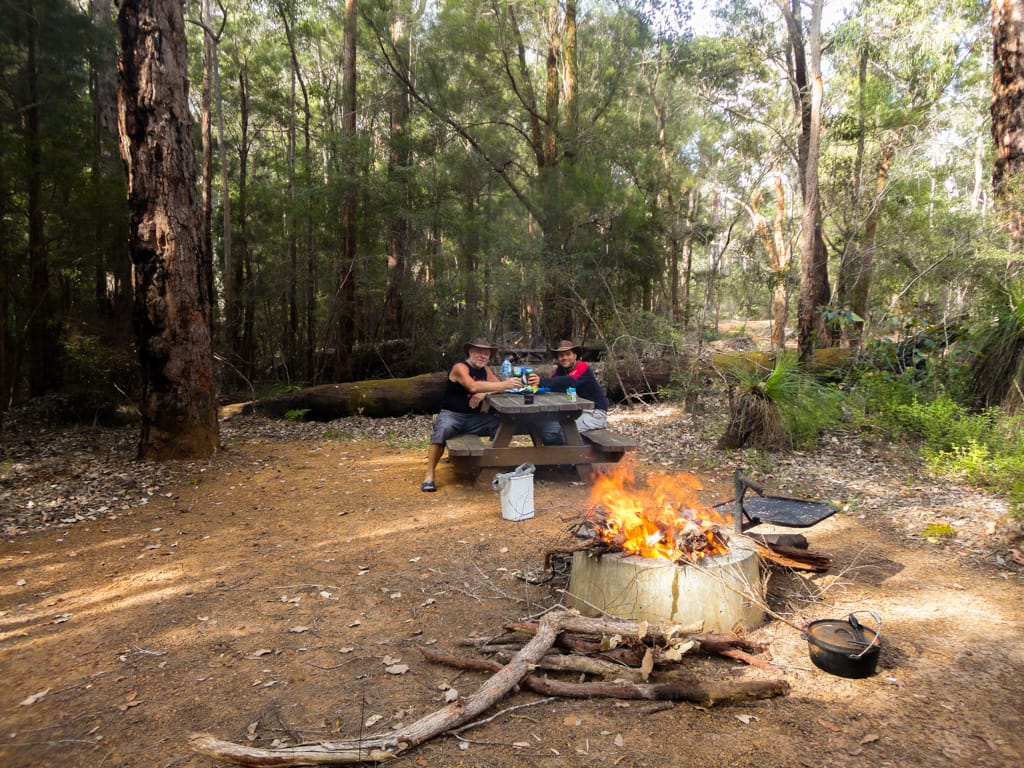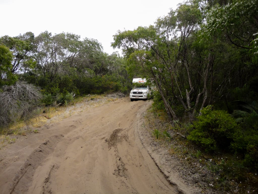 Bis nach Augusta waren es nur ca. 50 km. Um ganz ins Cap zum Leuchtturm zu gelangen, hätte man bereits wieder eine Eintrittsgebühr bezahlen müssen. So entschieden wir uns dagegen und machten eine ausgiebige Mittagspause am Strand. Unsere Weiterfahrt liess uns zuerst wieder einige Kilometer zurück fahren bis wir auf eine ungeteerte Strasse abbogen und unsere erste gemeinsame 4WD-Strecke begannen. Nach einem schönen Warm-up mit Aussicht auf ein Känguru fanden wir ein schönes Plätzchen für unser Nachtlager. Mit zwei Fahrzeugen fühlt man sich ausserhalb schon viel wohler und wir genossen die Abgeschiedenheit und den Sternenhimmel. Der nächste Tag war ziemlich bewölkt und die Offroadpiste bat uns viel Spass. Die Sandpiste zeigte sich von allen Seiten, mal tief, mal steil, usw. Rechts und links blühte sehr viel und zwischendurch gab es uns ein Gefühl, als durchquere man den Dschungel. Auch in die australische Tierwelt erhielten Uschi und Rolf einen ersten Einblick. Ausser einem weiteren Känguru konnten sie zwei spezielle Echsen beobachten, einige Emus aus der Ferne erblicken und farbige Papageien, sowie ein Kokaburra entdecken. Einmal mussten wir mit einem Auto kreuzen, das allerdings im Sand feststeckte. Nach dem die Australier auch mal etwas Luft aus ihren Reifen liessen, konnten sie uns dann Platz machen für die Weiterfahrt. Beim Lake Jasper wäre ein schöner Campground gewesen, allerdings bewohnten viele Fliegen und Bremsen den Platz, so dass wir nach dem Mittagsessen und einer Kinderbadepause uns weitermachten. Nach dem wir unsere 4WD-Route gut abschlossen und einige Kilometer auf der geteerten Strasse weiterfuhren, fanden wir einen Stellplatz im Wald. Zur Freude der Kinder konnten wir seit langem wieder einmal ein Feuer machen und somit ein feines Chili con Carne im Campoven brutzeln lassen.