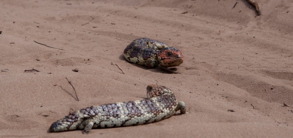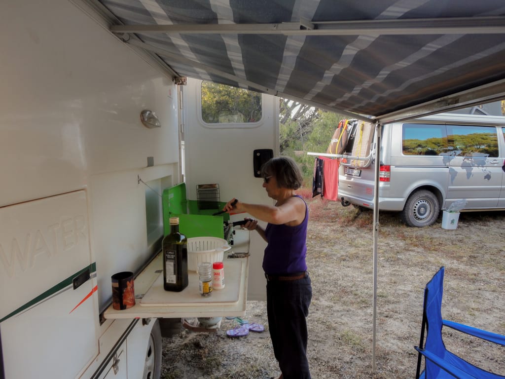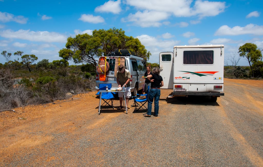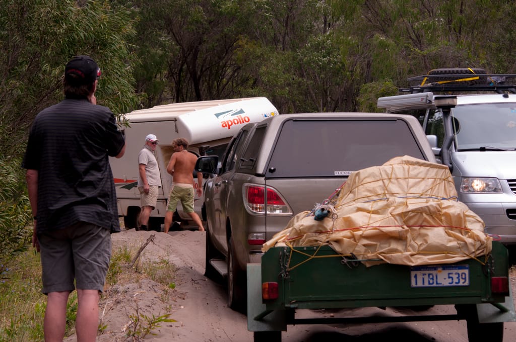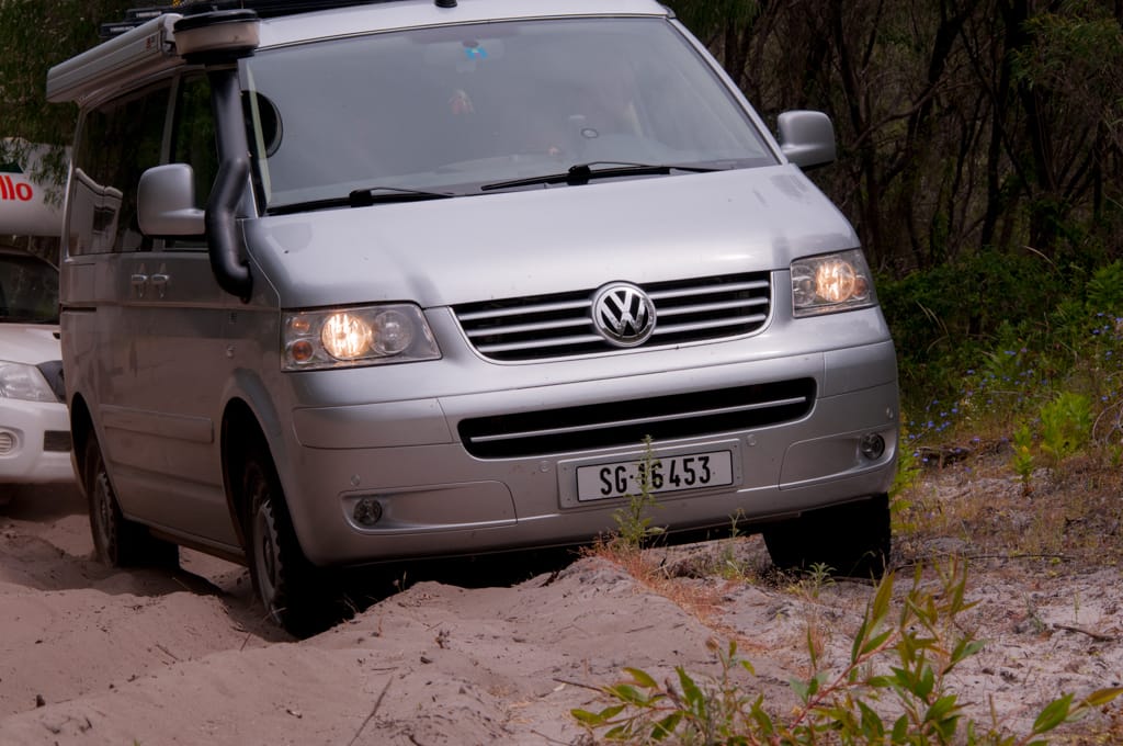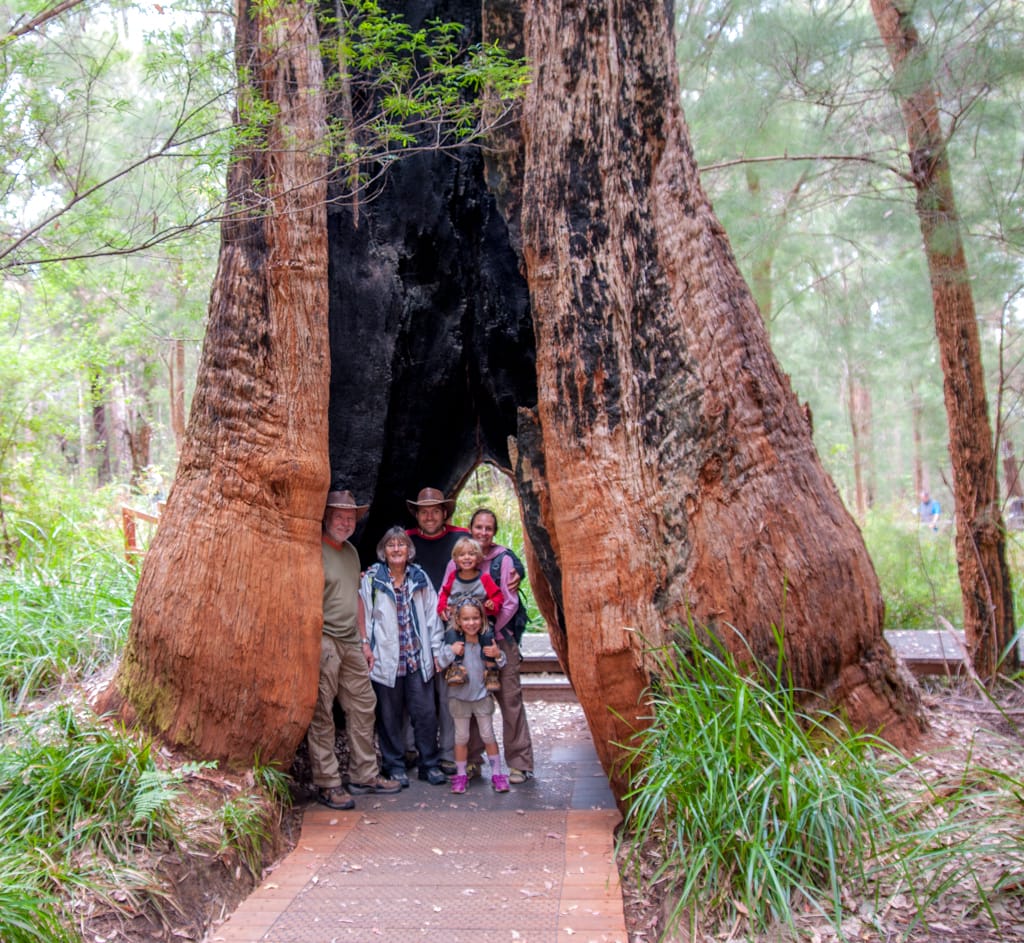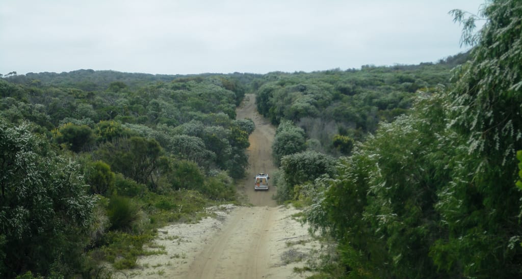 Bis nach Augusta waren es nur ca. 50 km. Um ganz ins Cap zum Leuchtturm zu gelangen, hätte man bereits wieder eine Eintrittsgebühr bezahlen müssen. So entschieden wir uns dagegen und machten eine ausgiebige Mittagspause am Strand. Unsere Weiterfahrt liess uns zuerst wieder einige Kilometer zurück fahren bis wir auf eine ungeteerte Strasse abbogen und unsere erste gemeinsame 4WD-Strecke begannen. Nach einem schönen Warm-up mit Aussicht auf ein Känguru fanden wir ein schönes Plätzchen für unser Nachtlager. Mit zwei Fahrzeugen fühlt man sich ausserhalb schon viel wohler und wir genossen die Abgeschiedenheit und den Sternenhimmel. Der nächste Tag war ziemlich bewölkt und die Offroadpiste bat uns viel Spass. Die Sandpiste zeigte sich von allen Seiten, mal tief, mal steil, usw. Rechts und links blühte sehr viel und zwischendurch gab es uns ein Gefühl, als durchquere man den Dschungel. Auch in die australische Tierwelt erhielten Uschi und Rolf einen ersten Einblick. Ausser einem weiteren Känguru konnten sie zwei spezielle Echsen beobachten, einige Emus aus der Ferne erblicken und farbige Papageien, sowie ein Kokaburra entdecken. Einmal mussten wir mit einem Auto kreuzen, das allerdings im Sand feststeckte. Nach dem die Australier auch mal etwas Luft aus ihren Reifen liessen, konnten sie uns dann Platz machen für die Weiterfahrt. Beim Lake Jasper wäre ein schöner Campground gewesen, allerdings bewohnten viele Fliegen und Bremsen den Platz, so dass wir nach dem Mittagsessen und einer Kinderbadepause uns weitermachten. Nach dem wir unsere 4WD-Route gut abschlossen und einige Kilometer auf der geteerten Strasse weiterfuhren, fanden wir einen Stellplatz im Wald. Zur Freude der Kinder konnten wir seit langem wieder einmal ein Feuer machen und somit ein feines Chili con Carne im Campoven brutzeln lassen.