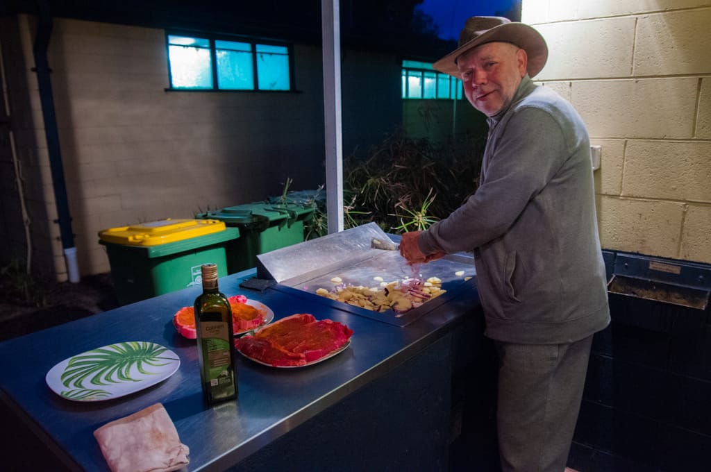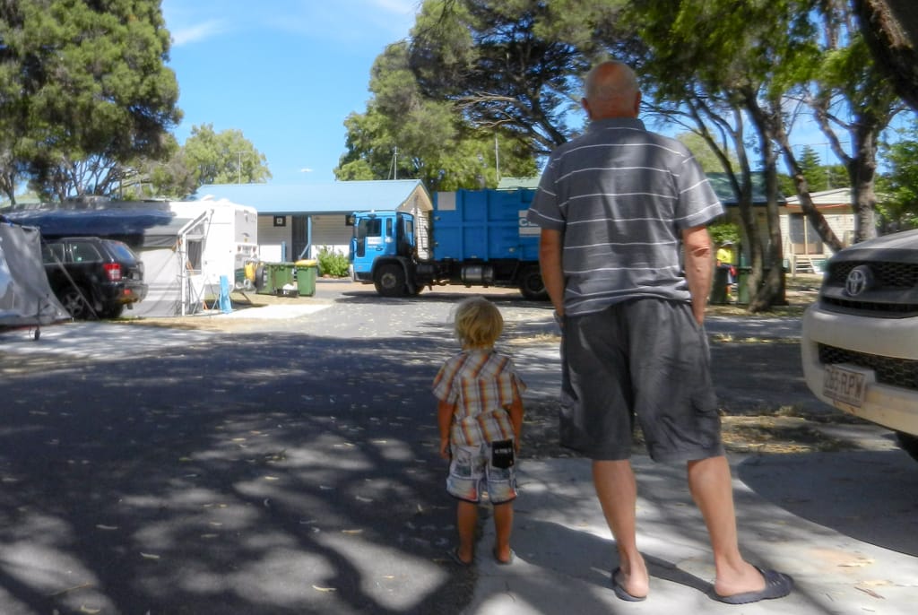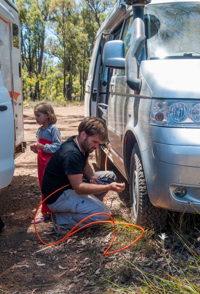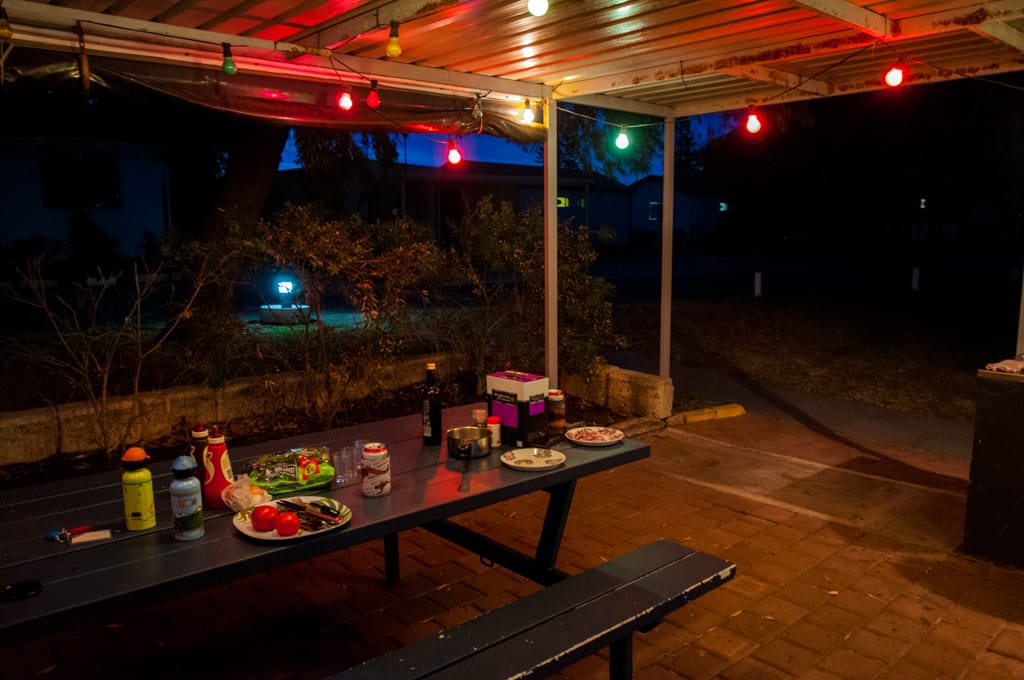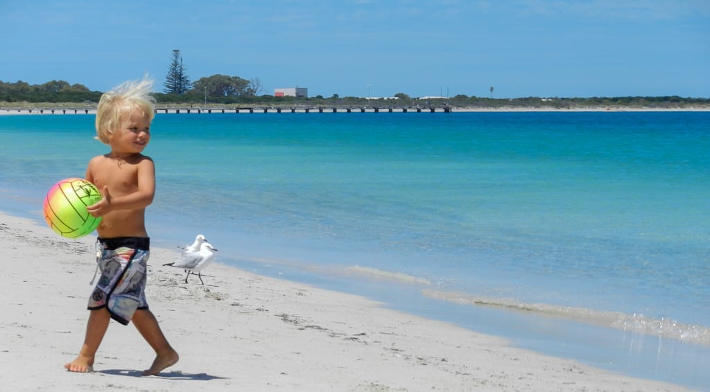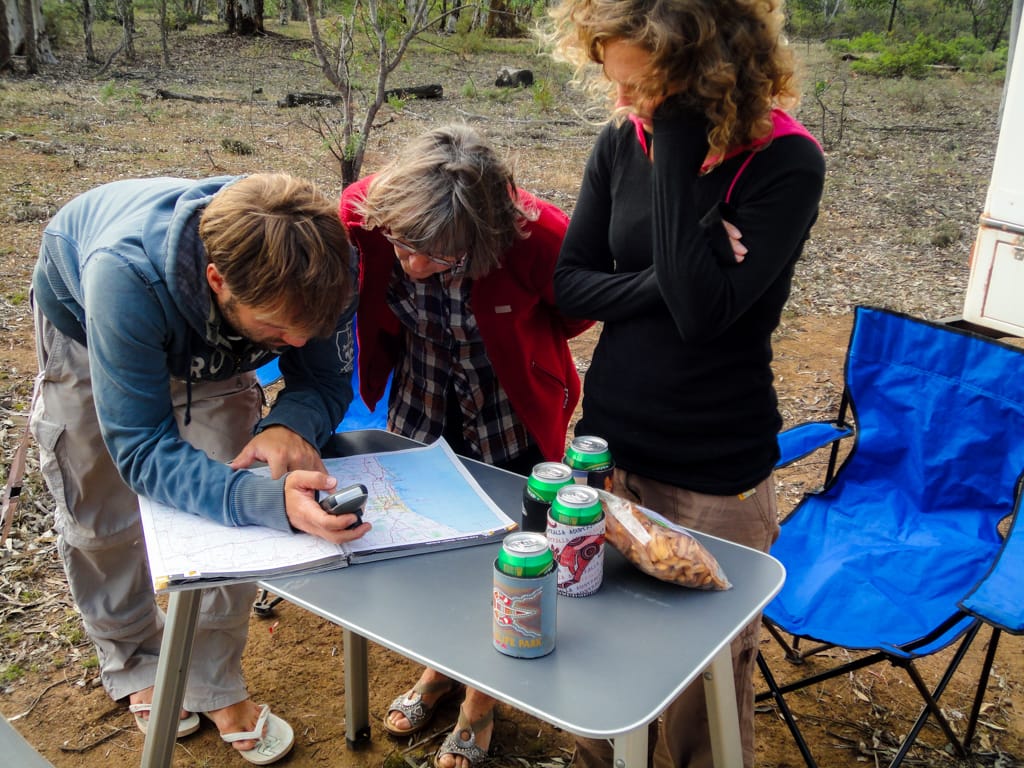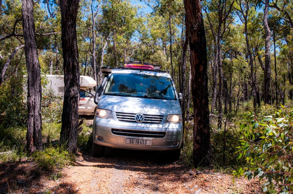 Da wir nochmals etwas Offroadfahren wollten, nahmen wir einen Umweg in Kauf. Von Merredin fuhren wir nach York, wo wir unsere Vorräte auffüllten und im Stadtpark ein Barbecue machten. Hier hätte es einen schönen gratis Stellplatz inklusive Stromanschlüsse. Wir wollten jedoch weiter und so fuhren wir in den Wandoo Nationalpark. Die Waldwege boten uns viel Abwechslung und nachdem einige Kängurus vor uns durchhüpften, liessen wir Uschi und Rolf nach vorne, damit auch sie noch ein paar Tiere zu Gesicht bekamen. So konnten sie neben den Kängurus sogar eine Emufamilie mit etwa 8 Jungen beobachten. Als wir uns ein geeignetes Nachtplätzchen suchten, machten wir die Rechnung ohne ganz kleine Waldbewohner namens Zecken… Wir genossen den kühlen Abend in der Wildnis. Der nächste Morgen war dann nicht mehr so angenehm als Uschi bemerkte, dass sie mit einer Zecke am Bauch geschlafen hatte. Rolf kratzte sich eine Zecke aus dem Bart und beim anschliessenden Absuchen wurde auch ich bei Cédric und mir fündig. So packten wir eiligst unsere Sachen zusammen und verliessen das Zeckennest. Allerdings wollten ganz viele Zecken auch weg von diesem Ort und hatten bereits heimlich in unserem Auto Platz genommen… Schmale Wege und einige quer liegende Bäume liessen uns keine Langweile aufkommen. Als wir wieder geteerte Strasse unter unseren Rädern hatten, füllten die Männer die Pneus wieder mit viel Luft und wir fuhren an die Küste vor Fremantle. In einer schönen Parkanlage direkt am Meer grillierten wir unser Mittagessen während sich die Kinder auf dem Spielplatz austobten. Beim Spaziergang am Meer zeigten sich vor unseren Füssen einige Seesterne und weiter aussen sprangen ein paar Delfine aus dem Wasser. Wir beschlossen auf den nahe gelegenen Zeltplatz zu ziehen um unsere Autos auszuräumen und eine Zeckenputzaktion zu starten. Während die Kinder, Uschi und ich am Meer entlang liefen, stellten Rolf und Martin die Autos auf den Campingplatz. Danach konnte das Zeckensuchen beginnen. Es wurden auch etliche gefunden, dennoch verging seither keinen Tag ohne dass bei jemanden eine Zecke entfernt werden musste. Das Absuchen nach diesen fiesen, kleinen Tierchen steht seither jeden Abend auf unserem Tagesprogramm. Ansonsten geniessen wir hier vor allem das Meer und den Strand. Einen zweiten Besuch im hippen Städtchen Fremantle liessen wir uns natürlich auch nicht entgehen.