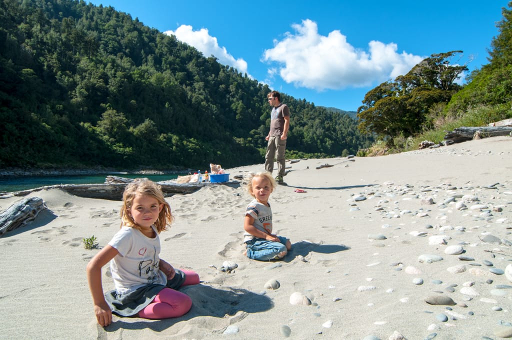 Unsere Route brachte uns nach Queenstown, wo wir eine ausgedehnte Mittagspause einplanten. Queenstown ist für alle Extremsportarten bekannt und im Winter ist hier wohl das beste Skigebiet der gesamten Südhalbkugel (aber nicht sehr verlockend gegen Schweizer oder Österreicher Skigebiete). Eigentlich wollten wir hier etwas Shoppen gehen. Da Queenstown aber sehr auf Touristen ausgerichtet ist und viele Markenkleider anbietet, lagen die Angebote nicht in unserem Budget. Dafür beglückten wir uns mit einem ultrafeinen Burger zum Zmittag. Danach fuhren wir weiter bis nach Wanaka, das versucht Queenstwon nachzueifern. Die Fahrt brachte uns durch schöne Berglandschaften mit vielen Seen, die einen an den Lago Maggiore oder den Gardasee erinnerten. Am Lake Wanaka während des Aperos tauchte die untergehende Sonne das ganze Gebiet in ein wundervolles Licht. Während Jojo und Christa auswärts im Städtchen essen gingen, machten wir es uns auf dem Campingplatz gemütlich. Schade, dass wir am nächsten Tag schon wieder weiterreisen mussten. Der weite Weg bis auf Auckland hinauf gibt uns ein straffes Tagesprogramm vor und so wollten wir einfach möglichst viele Kilometer in nördlicher Richtung schaffen. Ein versuchter Mittagsrast scheiterte angesichts der vielen Sandflys und so hungerten wir bis wir den Ort Franz Josef erreichten. Um keine Zeit zu verlieren, richteten wir uns so ein, dass wir während des Fahrens essen konnten und so schafften wir es an diesem Tag bis nach Greymouth. Die lange Autofahrt führte uns glücklicherweise durch eine sehr abwechslungsreiche Landschaft. Seen, Berge, Bäche, Meer und der vermisste Regenwald zeigte sich an der wilden Westküste. Vor einigen Jahren konnte man sogar noch die Gletscher sehen, die fast bis ans Meer reichten, die aber die letzten Jahre extrem zurückgingen. Auf dem Kiwi Zeltplatz vor Greymouth wurde unser Verdacht bestätigt, dass man in Neuseeland nicht so einfach schummeln kann wie in Australien. Während sich kaum ein Aussie darum kümmert, wie viele Personen oder Autos auf einer Parzelle sind, mussten wir in Neuseeland überall zwei Plätze lösen. Hier kam nun noch dazu, dass wir am nächsten Morgen die Kinder nachzahlen mussten. Der ganze Park ist videoüberwacht und so verlangte die Campingbesitzerin nochmals zusätzlich 20 Dollar von uns. Um unsere Fahrzeit auf dem Minimum zu halten, entschieden Martin und ich nun auf direktem Weg nach Picton zu fahren und nicht mit Christa und Jojo über den Abel Tasman Nationalpark zu reisen. Die schönen Strände dort können wahrscheinlich nicht mit den Topstränden Australiens mithalten und Regenwald hatten wir ja in Tasmanien oft. Unsere kleine Reisegruppe fuhr gemeinsam noch zu den Pancake Rocks, die uns wirklich sehr gut gefielen. Dann verabschiedeten wir uns von Christa und Jojo und verabredeten uns für einen weiteren Abend in Wellington. Die Westküste ist wirklich um einiges schöner als die Ostküste und die Weiterfahrt brachte uns spannende Ausblicke. An einem klaren Fluss machten wir die Mittagspause. Die schöne Idylle trügt jedoch. Wir haben gehört, dass fast alle Flüsse und Seen Neuseelands vergiftet sind. Die wegen ihres Felles importierten Opossums wurden zu einer Plage und deshalb gingen die Kiwis radikal mit Gift dahinter. Sie schafften es die Opossums ziemlich auszurotten, was nun aber das vergiftete Wasser zur Folge hat. Die Landschaft änderte plötzlich vom üppigen Regenwald zu einem trockenen alpinen Gebiet. Vor Picton durchfuhren wir riesige Weinanbaugebiete, die sogar gegen australische Gebiete gross erschienen. Endlich in Picton angekommen, unser letzter Halt auf der Südinsel, beglückte ein kleines Kätzchen unsere Kinder. Zoé und Cédric spielten die verbleibende Zeit des Abends mit der kleinen Mieze und hoffen, in der Schweiz auch wieder ein Kätzchen zu bekommen…