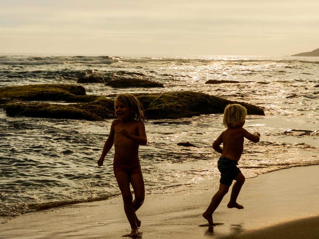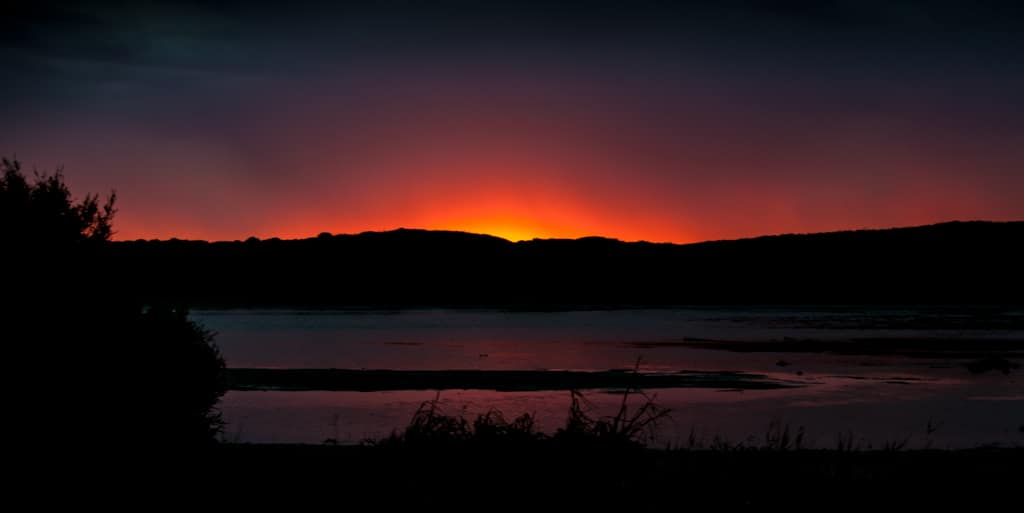 Schönes Aufwachen mit der fantastischen Aussicht! Noch schöner der Erhalt unserer Visaverlängerung! Endlich! Wir dürfen also die traumhafte Reise weiterhin zusammen mit unseren Kindern geniessen. Die Freude unsererseits war grösser wie diejenige der Kinder. Ihnen scheint die Vorstellung von zu Hause Briobahn spielen, Puppenwagen umherstossen oder Velo zu fahren doch auch sehr verlockend… Aber ich bin mir sicher, kaum wären wir zu Hause, würde ihnen der Strand und die vielen Spielplätze fehlen. Für Martin und mich ist es aber eine Erleichterung zu wissen, dass wir Australien nicht so Knall auf Fall verlassen müssen und diejenigen Sachen, die wir noch sehen möchten, auch bereisen dürfen. Somit fiel uns mit der Visaverlängerung ein grosser Stein vom Herzen. Es wurde ein heisser Tag. Rekordverdächtig. Wir kamen zur Grenze zwischen South Australia und dem Bundesstaat Victoria. Entgegen unserer Erwartung passierten wir keinen Quarantänen Checkpoint. Im ersten Victoria-Örtchen Nelson hielten wir bei der Touristinformation und kauften am Kiosk, der einzige Lebensmittelladen im Dorf, Toastbrot und Glacés. Um uns noch etwas mehr abzukühlen unternahmen wir einen kleinen Abstecher an die Bridgewater Bay. Ein wunderschöner Strand, der allerdings gut besucht wurde, empfing uns. Wir parkierten, stürzten uns ins kalte Wasser, setzten uns sofort in Charlys Schatten, assen unser Mittagessen, stürzten uns nochmals ins kühle Nass und stiegen wieder ins Auto. Wir zum Glück mit Klimaanlage, Oli leider ohne. Im Fitzroy River Reserve fanden wir eine günstige Bleibe für eine Nacht. Unglücklicherweise stank der Fluss und mit Baden war nichts mehr. Das kleine Gewitter liess die Temperaturen ein wenig kühler werden, doch wir waren uns einig, dass das Thermometer während der Nacht wohl nicht unter 30 Grad kam… Der Sonnenuntergang, der die Landschaft und den Fluss jedoch in ein unglaubliches rot-violett-blaues Licht tauchte, entschädigte die negativen Punkte.
