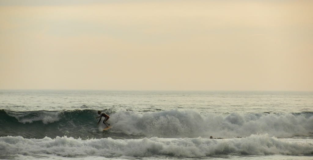 Morgens um 9 Uhr fuhren wir bei 34 Grad ab. Bei Warrnambool stockten wir unsere Vorräte wieder auf. Wir hörten im Radio von den lodernden Buschbrände in Victoria. Je weiter wir östlich fuhren, desto klarer sahen wir auch die riesige Rauchwolke. Eine spezielle Stimmung lag in der Luft, die Wolken und das Licht schienen uns seltsam und wir sahen noch nie so viele Feuerwehrautos auf den Strassen wie an diesem Tag. Man hatte das Gefühl, alle sind in höchster Bereitschaft. Wir hörten fleissig Radio und lokalisierten den grössten Buschbrand knapp 200 km nördlich von uns. Die Temperaturen sackten in sich zusammen. Nur zwei Stunden nach unserer Abfahrt hatten wir nur noch 23 Grad. Unsere Route führte uns am Wasser entlang, dennoch hielten wir die Rauchwolken in den Augen. Wir erreichten die bekannte Great Ocean Road. Bereits unser erster Stopp mit Sicht auf die Bay of Island versprach uns viel von dieser rauen Küste. Ein weiterer Halt gab es bei der London Bridge, die trotz des Einsturzes vor genau 5 Jahren immer noch sehenswert ist. Bei den 12 Aposteln, die eigentlich gar nicht 12 sind und auch nie gewesen waren, sondern nur so heissen, weil es die Menschen anzieht, machten wir die Mittagspause. Während ich kochte konnten sich die anderen die Helikopter, die am Laufmeter mit Asiaten und Indern starteten und landeten, ansehen. Cédric konnte nicht ganz verstehen, wieso dass anderer Leute diese Rundflüge machen konnten und wir nicht. Er meinte, wir sollen doch auch unser Geld hier abgeben… Die grossartige Meeresstrasse führte uns dann weiter in die Höhe durch den Wald. Durch die wenigen Sonnenstrahlen, die sich heute durchkämpfen können, fiel der ganze Wald in ein rötliches Licht, das uns an wunderschöne Herbsttage erinnern liess. Ein Nebensträsschen brachte uns zurück an den Johanna Strand und einen schönen gratis Stellplatz. Der Strand ist vor allem fürs Surfen bekannt. Internationale Surferwettbewerbe fanden hier schon statt. Vielleicht gerade wegen den vielen Buschbränden war das Farbenspektakel des Sonnenuntergangs heute aussergewöhnlich schön.