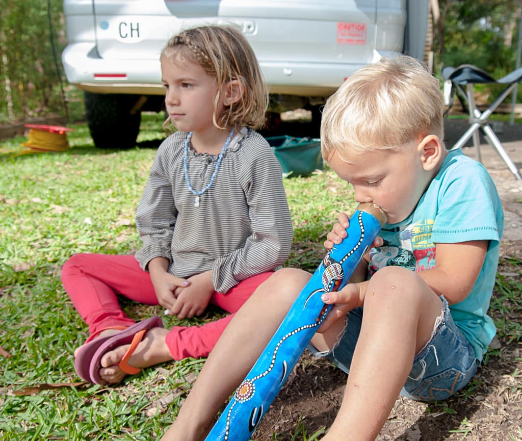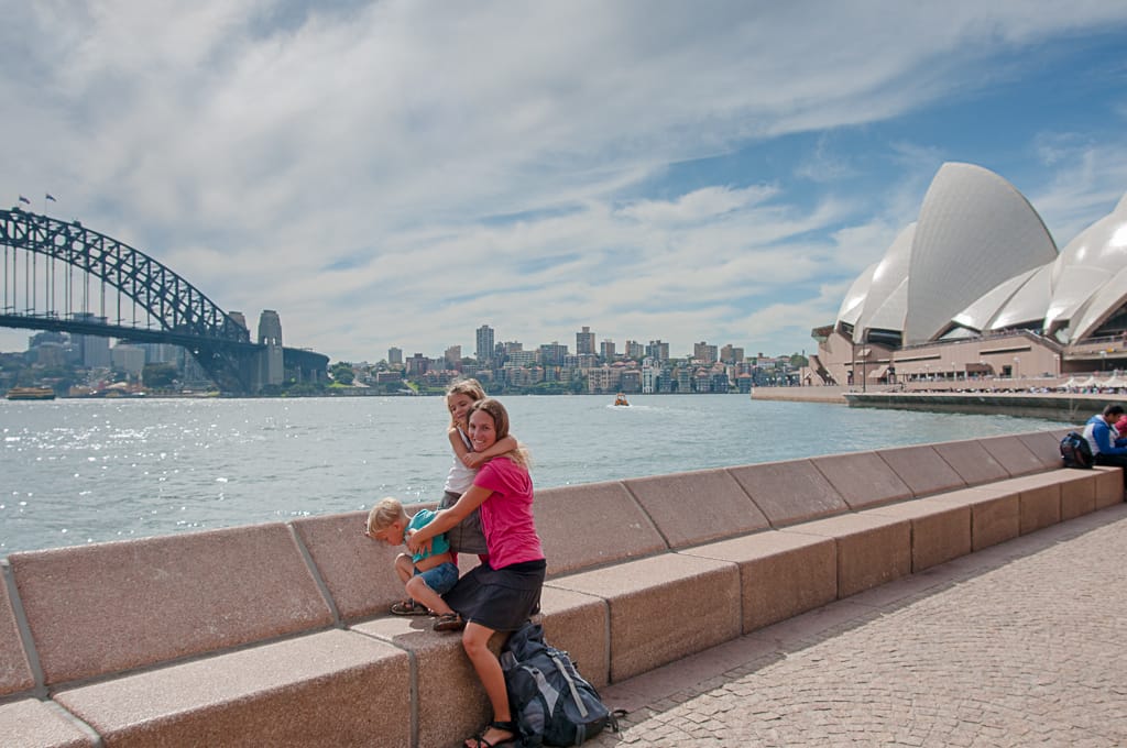 Wir kauften uns ein Wochenticket für alle Bahnen, Busse und Fähren in Sydney und konnten so optimal diese Weltstadt erkunden: Opernhaus, Harbour Bridge, Manly Beach, Darling Harbour, The Rocks, … . In Sydney kann man viele europäische Läden sehen, die Leute sind nicht so dick wie in anderen australischen Städten und meinem Eindruck nach auch viel mehr aufs Äussere bedacht. Sehen und gesehen werden! Ironischerweise sahen wir in dieser Stadt Aborigine-Strassenkünstler, die Didgeridoo spielten. Während neun Monaten reisten wir durch ganz Australien und treffen erst auf unserer letzten Station auf Didgeridoospieler… Cédric jedenfalls fand grosses Interesse daran und als sich unsere Kinder im Souvenirladen etwas aussuchen durften, wählte er ein kleines Didgeridoo (während Zoé sich für Koala-Fingerring und Kette entschied).