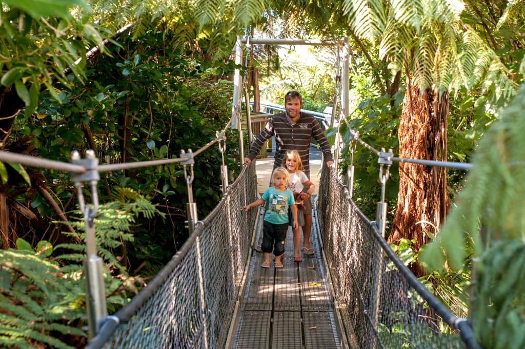 Die Zeitverging rasend schnell im Land, in dem als erstes die Sonne aufgeht… Schon sind wir wieder in Australien gelandet… Die wenigen Tage auf der Nordinsel Neuseelands haben uns sehr gut gefallen und schenkten uns einige Highlights zum Abschluss dieses Trips. Dazu kam das angenehme Sommerwetter, das wir die letzte Woche geniessen durften. Aber nun nochmals der Reihe nach. Die Überfahrt von der Südinsel zur Nordinsel war extrem schön. Anfangs fährt man durch die Fjorde und dank des Nebels gab es ein schönes Naturspiel zwischen Wasser, Berge, Wolken und Sonne. Wellington, die Hauptstadt Neuseelands, begeisterte uns total. Ich würde sagen, es ist die beste Stadt von ganz Ozeanien (mal sehen was Sydney noch zu bieten hat, ansonsten bleibt Wellington meine Nummer eins!). Die Waterfront von Wellington ist einfach genial. Sie verstanden es Modernes mit Traditionellem zu verschmelzen, dazu alles total kinderfreundlich. Es herrscht überhaupt kein Grossstadtfeeling, sondern es treibt ein gemütliches Flair durch Cafés und Läden. Sogar im Undergroundmarket spürte man eine spezielle Stimmung. Die freundlichen Buschauffeure passen ins Stadtbild. Das Te Papa Museum, das gratis besichtigt werden kann, begeisterte die Kinder ebenso wie uns Erwachsenen. Wir gingen zwei Mal ins Museum und schafften trotzdem nur 4 von 6 Etagen zu erforschen. Ich behaupte, jeder könnte in diesem Museum sich eine ganze Woche verweilen. Wir konnten dort z. B. eine riesen Krake bestaunen, uns in einem Haus von einem Erdbeben durchschütteln lassen oder in einem wunderschönen Maori-Versammlungshaus Platz nehmen. Die Kinder krochen durch ein Walherz, spielten in einem Verkäuferliladen aus den 60er Jahren oder spazierten über eine Hängebrücke.